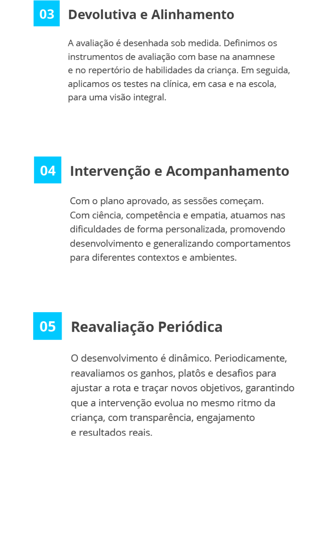 Não. A carga horária (quantas horas por semana e quais terapias) é definida exclusivamente pelas necessidades clínicas do seu filho. O plano é minuciosamente desenvolvido sob medida para buscarmos o máximo de potencial na intervenção.